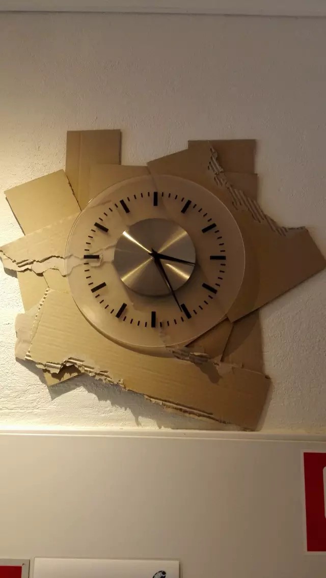 廢紙片背景的掛鐘