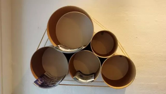 各種大小的紙筒做的掛墻儲物格