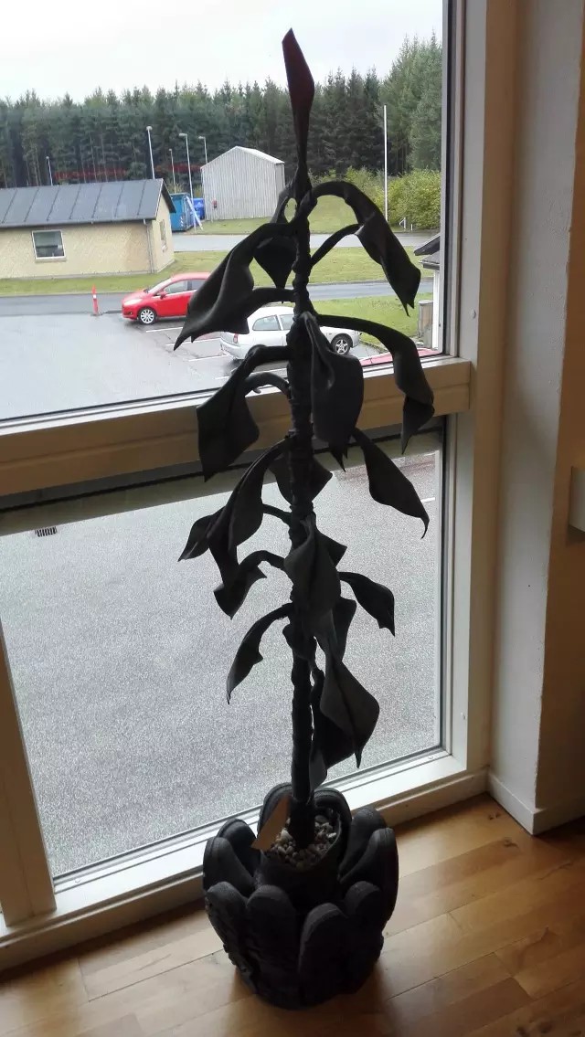 廢皮具+廢膠鞋做的花盆和植物