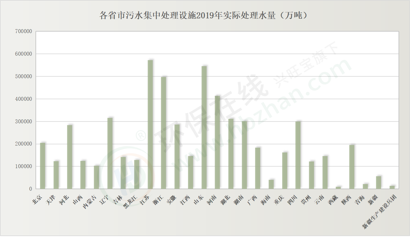 被納入清單的各省市污水集中處理設(shè)施2019年實(shí)際處理水量: