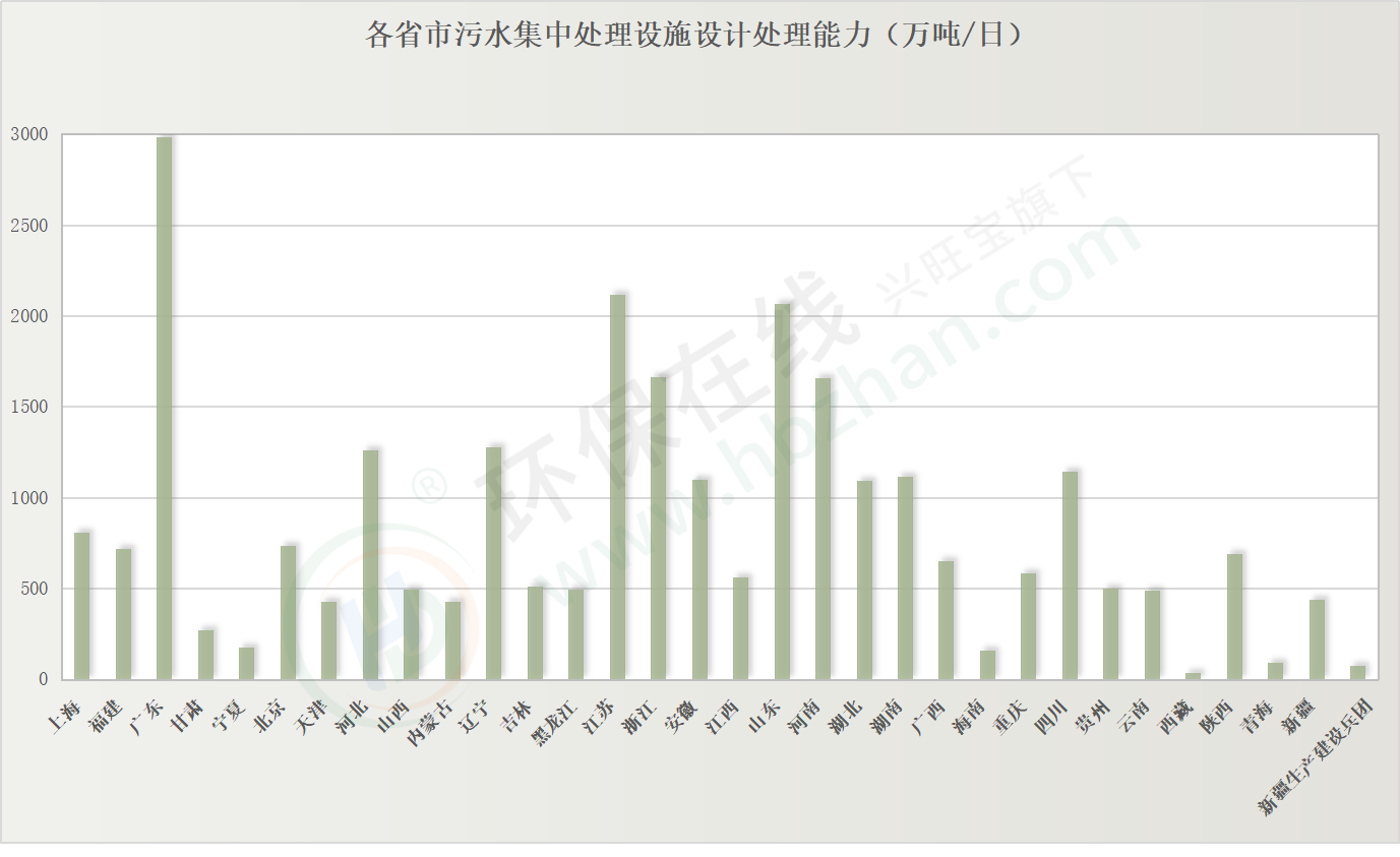 被納入清單的各省市污水集中處理設(shè)施設(shè)計(jì)處理能力: