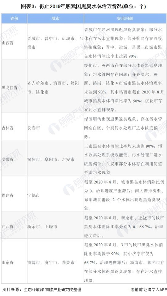 與此同時(shí),仍有部分城市黑臭水體治理進(jìn)度滯后。生態(tài)環(huán)境部最新發(fā)布的《關(guān)于2020年1-9月水環(huán)境目標(biāo)任務(wù)完成情況的函》指出:山西、黑龍江、廣東等15省(區(qū))部分城市黑臭水體消除比例低于90%,治理進(jìn)度滯后?,F(xiàn)存治理突出問(wèn)題主要有:消除比率不達(dá)標(biāo)、水體返黑返臭、污水管網(wǎng)設(shè)計(jì)不合理、污水直排、污水處理收集系統(tǒng)效能低。