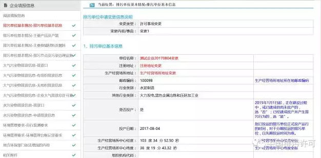 (2)排污單位申請變更時(shí),需先填寫變更類型和變更內(nèi)容/事由。前一次排污許可證申請信息自動(dòng)帶入,排污單位可在原有信息基礎(chǔ)上填寫或修改變更內(nèi)容。