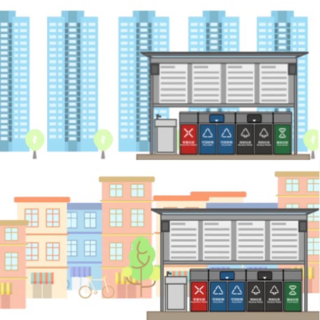 住宅區(qū)和城中村的指引對(duì)集中分類投放點(diǎn)的設(shè)施設(shè)備設(shè)置作了詳細(xì)的規(guī)范要求,一一列舉對(duì)各類垃圾收集容器的數(shù)量、容量、設(shè)置位置和配套設(shè)施的條件要求,要求生活垃圾分類投放管理人要滿足居民的投放需求。