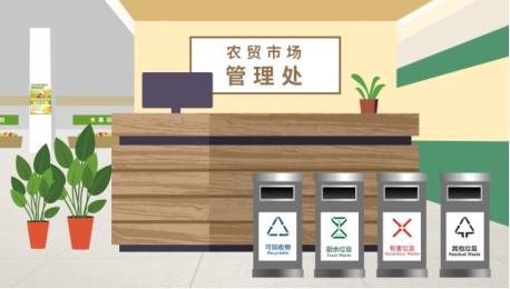 農(nóng)貿(mào)市場(chǎng)因?yàn)榕夸N售果蔬,產(chǎn)生的廚余垃圾和其他垃圾數(shù)量較大,因此農(nóng)貿(mào)市場(chǎng)指引里標(biāo)注,可分段、分樓層設(shè)置廚余垃圾、其他垃圾收集容器,設(shè)置數(shù)量根據(jù)市場(chǎng)實(shí)際情況決定。指引中還特別強(qiáng)調(diào)包裝用的繩子、塑料袋等要投入其他垃圾收集容器,不得與廚余垃圾混投。
