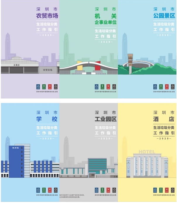 為指導(dǎo)生活垃圾分類投放與收集設(shè)施設(shè)置,推動(dòng)構(gòu)建科學(xué)合理、簡(jiǎn)便易行的分類投放體系,深圳市城市管理和綜合執(zhí)法局組織編制了學(xué)校、工業(yè)園、酒店、農(nóng)貿(mào)市場(chǎng)、機(jī)關(guān)事業(yè)單位、公園景區(qū)、醫(yī)院、餐飲場(chǎng)所、城中村、住宅區(qū)、商務(wù)寫字樓、大型商超12 類場(chǎng)所的生活垃圾分類投放工作指引。