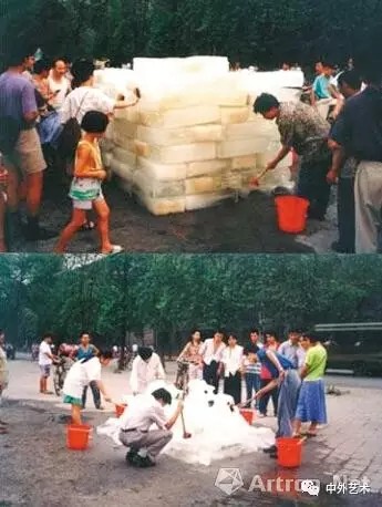 上世紀90年代,不少國內藝術家已經(jīng)用藝術作品表現(xiàn)環(huán)境破壞問題。類似藝術家尹秀珍1995年的行為藝術《洗河》便是因為當時成都府南河和全國的許多河流一樣,污染非常嚴重。為了形象地說明問題的嚴重性,尹秀珍借用現(xiàn)代工業(yè)手段將府南河河水取出了十立方米,在冰廠制成冰塊,然后再運回到岸邊以清水加以洗刷。過路的行人和市民見狀也紛紛參與其中。
