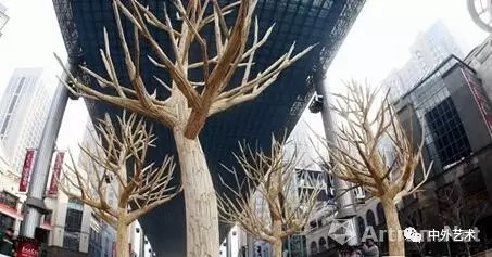 幾棵筷子樹的具體制作由20多所大學的200多位志愿者經(jīng)過3個星期的努力而完成,他們到餐館搜集了8萬余雙使用過的一次性筷子,并與設計師一起制作了筷子樹。