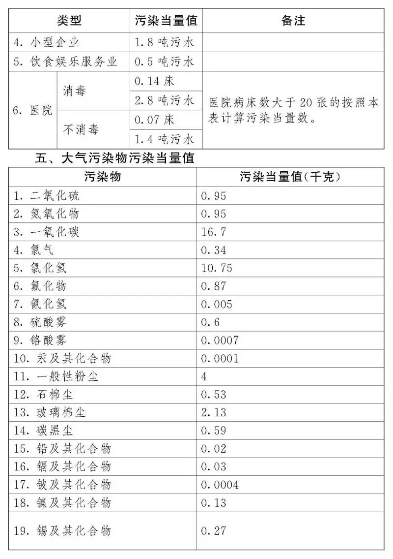 (一)污染當(dāng)量,是指根據(jù)污染物或者污染排放活動對環(huán)境的有害程度以及處理的技術(shù)經(jīng)濟性,衡量不同污染物對環(huán)境污染的綜合性指標或者計量單位。同一介質(zhì)相同污染當(dāng)量的不同污染物,其污染程度基本相當(dāng)。
