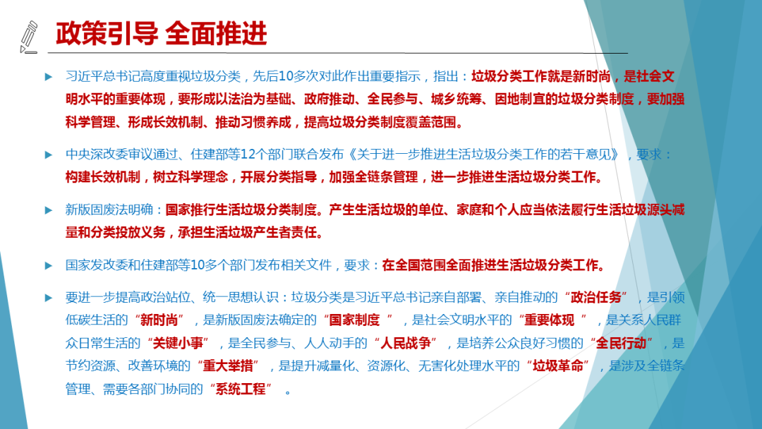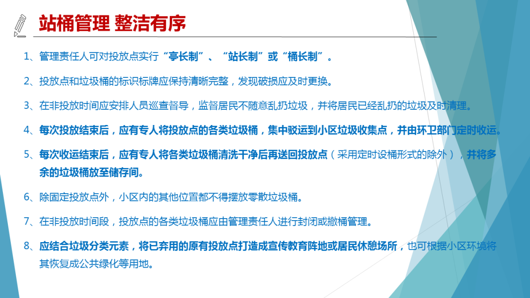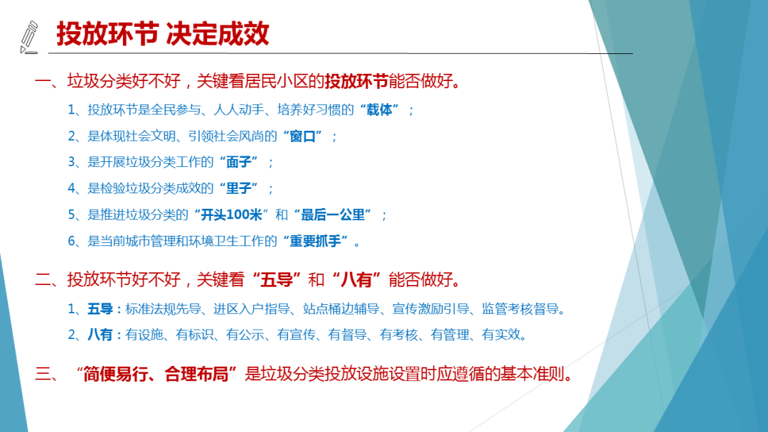 自習(xí)近平總書記2016年11月21日提出要建立生活垃圾分類制度以來,46個(gè)重點(diǎn)城市的垃圾分類工作取得了初步成效,其他城市的垃圾分類工作也在逐步推進(jìn),但由于受新冠疫情等影響,總體進(jìn)展情況低于預(yù)期。垃圾分類是一項(xiàng)涉及面很廣的系統(tǒng)工程,其中小區(qū)投放環(huán)節(jié)是決定成敗的核心環(huán)節(jié),而“簡便易行、合理布局”是投放設(shè)施設(shè)置的基本準(zhǔn)則。如何按照這個(gè)準(zhǔn)則來規(guī)范管理人職責(zé)和行為、優(yōu)化投放點(diǎn)設(shè)置和形式、實(shí)施居民區(qū)宣傳和督導(dǎo)?本期固廢觀察將與你一一分享。