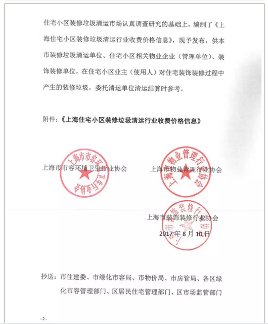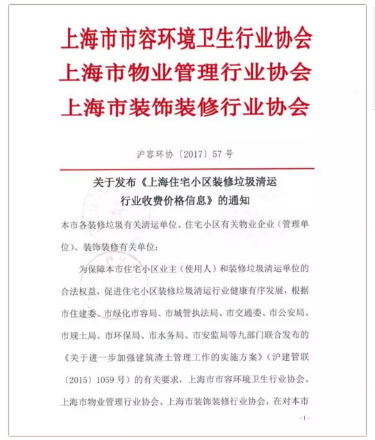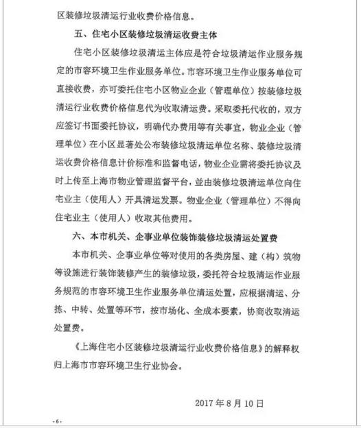 《上海市住宅小區(qū)裝修垃圾清運行業(yè)收費價格信息》全文內(nèi)容如下: