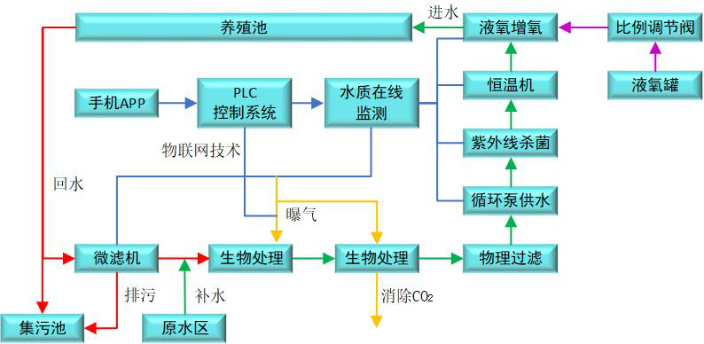 多營養(yǎng)層次綜合養(yǎng)殖模式?!岸酄I養(yǎng)層次綜合養(yǎng)殖模式”是指在同一養(yǎng)殖區(qū)域內(nèi)合理搭配不同營養(yǎng)層級(jí)、養(yǎng)殖生態(tài)位互補(bǔ)的動(dòng)植物,實(shí)現(xiàn)水質(zhì)調(diào)控、營養(yǎng)物質(zhì)循環(huán)利用、生態(tài)防病及質(zhì)量安全控制,在提高養(yǎng)殖效益的同時(shí)減少養(yǎng)殖廢物排放。威海市尋山集團(tuán)與水科院黃海所合作,在桑溝灣海域構(gòu)建“721模式”,即上層養(yǎng)殖海帶,占單位養(yǎng)殖面積的70%;中層養(yǎng)殖貝類、魚類,占單位養(yǎng)殖面積的20%;底層養(yǎng)殖鮑魚、海參,占位養(yǎng)殖面積的10%。該模式與傳統(tǒng)單一養(yǎng)殖模式相比,年產(chǎn)出增加30%,固碳量11萬噸。桑溝灣多營養(yǎng)層級(jí)養(yǎng)殖模式累計(jì)吸引了全世界30多個(gè)國家和地區(qū)的專家學(xué)者前來學(xué)習(xí)考察,成為綠色養(yǎng)殖樣板。圖 6 多營養(yǎng)層次綜合養(yǎng)殖模式示意圖表 1 立體生態(tài)養(yǎng)殖每畝產(chǎn)量及收益情況對(duì)比表注:貝類及底播增殖品種養(yǎng)殖周期為2-2.5年工業(yè)化循環(huán)水養(yǎng)殖技術(shù)模式。采用標(biāo)準(zhǔn)化、模塊化、工業(yè)化循環(huán)水養(yǎng)殖技術(shù),通過水質(zhì)測(cè)控、糞便收集、水體凈化、恒溫供氧、魚菜共生和智慧漁業(yè)等功能模塊,實(shí)現(xiàn)資源高效利用、循環(huán)用水、環(huán)保節(jié)能和風(fēng)險(xiǎn)控制。該模式養(yǎng)殖全程在相對(duì)封閉的養(yǎng)殖池內(nèi)完成,可實(shí)現(xiàn)水資源循環(huán)利用、飼料精準(zhǔn)投喂、污水與廢物近乎零排放,單位水體產(chǎn)出約是普通池塘養(yǎng)殖的20倍,單位產(chǎn)量耗能僅為普通池塘養(yǎng)殖的1/3。