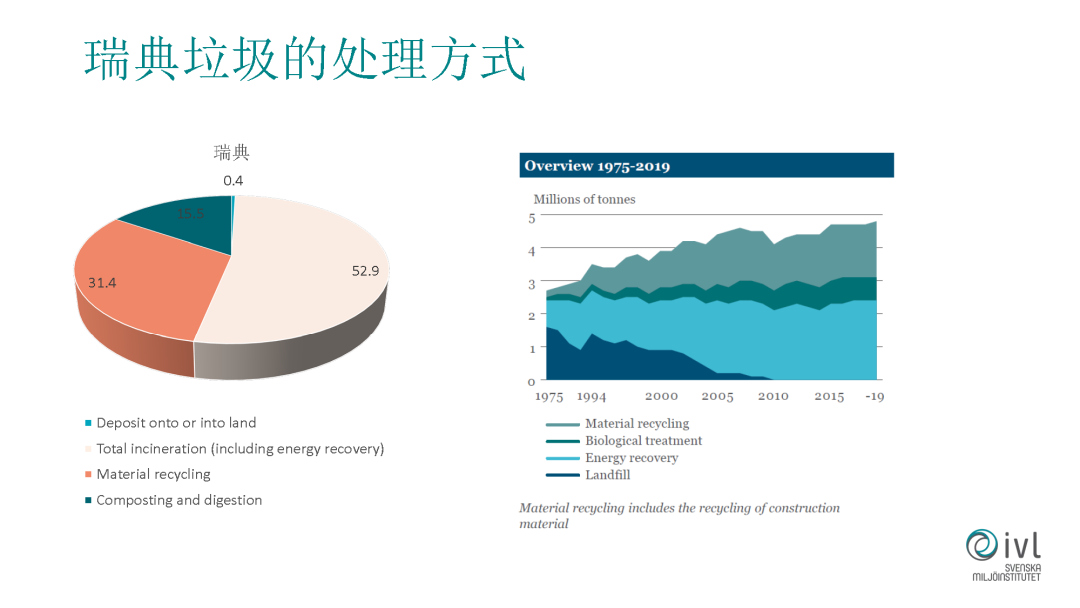 其他的垃圾處理的手段,比如做垃圾電能源,我們所說的垃圾焚燒,我們國內(nèi)現(xiàn)在做的也非常好了。有一點不太一樣,在瑞典它的垃圾焚燒不只是發(fā)電,更多的是去供熱。瑞典的垃圾焚燒廠很多建在市中心,逛完街可能對面就是垃圾焚燒廠。為什么能建的這么近?一個是考慮它供熱比較方便,不用長距離輸送熱量。另外垃圾焚燒的排放做到了非常讓民眾幸福的水平,在過去也有大家不喜歡垃圾焚燒廠在自己家附近,現(xiàn)在所有的居民完全接受這個實施了。