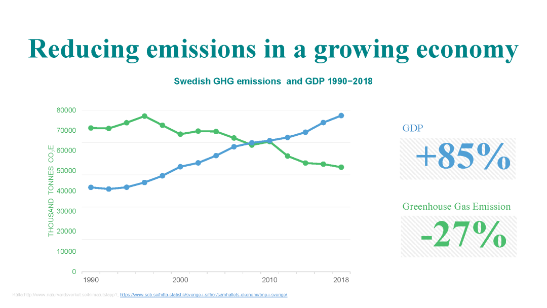瑞典是提出來在2045年達(dá)到碳中和,中國是2060年,在這方面我們也是接下來一個很重要的工作重點,我們目前也在跟瑞典駐華大使館做很多的交流,接下來可能會有很多這方面的戰(zhàn)略性的合作。這個圖片是想跟大家聊一下碳達(dá)峰、碳中和和經(jīng)濟的關(guān)系,有很多國家在比較靠前的時間就實現(xiàn)了碳達(dá)峰,有兩種原因。一種原因就是因為經(jīng)濟沒有很好的發(fā)展,整體排放量不會增加。另一種經(jīng)濟還是快速發(fā)展,但是它的碳排放已經(jīng)脫鉤了,是一個下降的趨勢,瑞典就是這種的一個代表。比如我們可以看到,它在九幾年的時候,綠線已經(jīng)達(dá)到了碳達(dá)峰,后續(xù)一直在降低。到2045年會達(dá)到中和,會到0左右。但是它的GDP一直是快速的增加,這個對碳中和是更加有意義的一種方向。