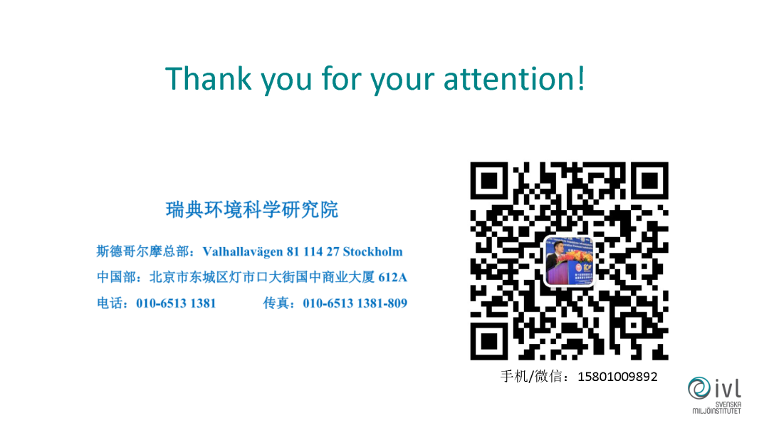 最后跟大家分享一個平臺,瑞典政府現(xiàn)在打造的一個叫智慧城市瑞典的技術(shù)出口和投資平臺。瑞典環(huán)科院有一半是瑞典政府的股份,所以我們在做自己的研究科研以外,我們也幫瑞典的政府做很多服務(wù)。這是瑞典政府投資的一個平臺,他的目的是把瑞典更多的技術(shù)方案、技術(shù)公司向全球推廣。我們在中國的辦公室除了做研究和咨詢以外,也提供這方面的職能。目前這個平臺有一千多家的清潔環(huán)保公司,如果我們存在哪些環(huán)境問題,或者對哪些技術(shù)有需求,可以跟我們?nèi)〉靡恍┞?lián)系。我們可以協(xié)調(diào)組織一些線上的或者線下的交流會,和瑞典那邊做一些互動,促進(jìn)中國和瑞典在節(jié)能環(huán)保領(lǐng)域的合作。