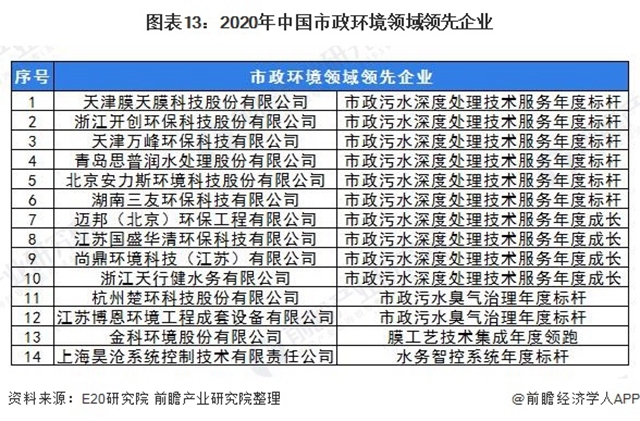 在細(xì)分領(lǐng)域方面,天津膜天膜科技股份有限公司、浙江開創(chuàng)環(huán)??萍脊煞萦邢薰?、天津萬峰環(huán)??萍加邢薰镜?4家企業(yè)入選2020年市政環(huán)境領(lǐng)域領(lǐng)先企業(yè)榜單。江西金達(dá)萊環(huán)保股份有限公司、浙江雙良商達(dá)環(huán)保有限公司、安徽舜禹水務(wù)股份有限公司入選2020年村鎮(zhèn)污水處理領(lǐng)域領(lǐng)先企業(yè)榜單。