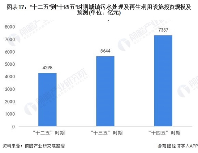根據(jù)“十三五”規(guī)劃中針對水環(huán)境治理領(lǐng)域的投資規(guī)模,同時結(jié)合新時期的農(nóng)村水環(huán)境治理與幾大流域生態(tài)治理的工程總量與復(fù)雜程度綜合分析,前瞻判斷“十四五”規(guī)劃中針對水環(huán)境治理的投資規(guī)?;蜻M(jìn)一步升級加碼至7337億元。中國污水處理市場仍有較大發(fā)展空間。