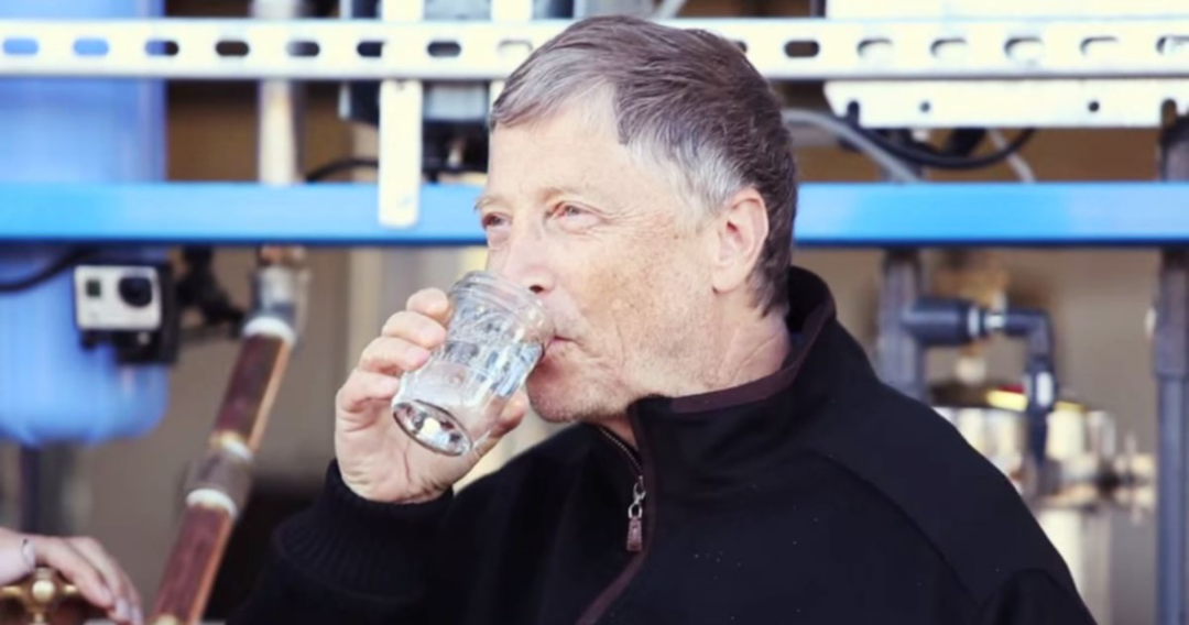 大家看到這張照片是不是很熟悉。這是誰,你們都知道對吧。這是2018年,比爾·蓋茨正在北京召開的新時代廁所博覽會的開幕式上做一個主題演講,他手里拿了個杯子。
