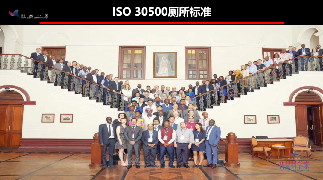 除了這個標準,國際上有一個ISO 30500的廁所標準,它也是針對我們要研發(fā)的廁所提出了一些控制的指標。這個標準有40多個國家的代表去參加編寫,表明它還是非常重要的,也受到了各個國家的關注。我也是代表中國參加了標準的編寫。這里面最后一張照片,就是我們這個標準最后完成的時候,40多個國家的代表的一個合影。