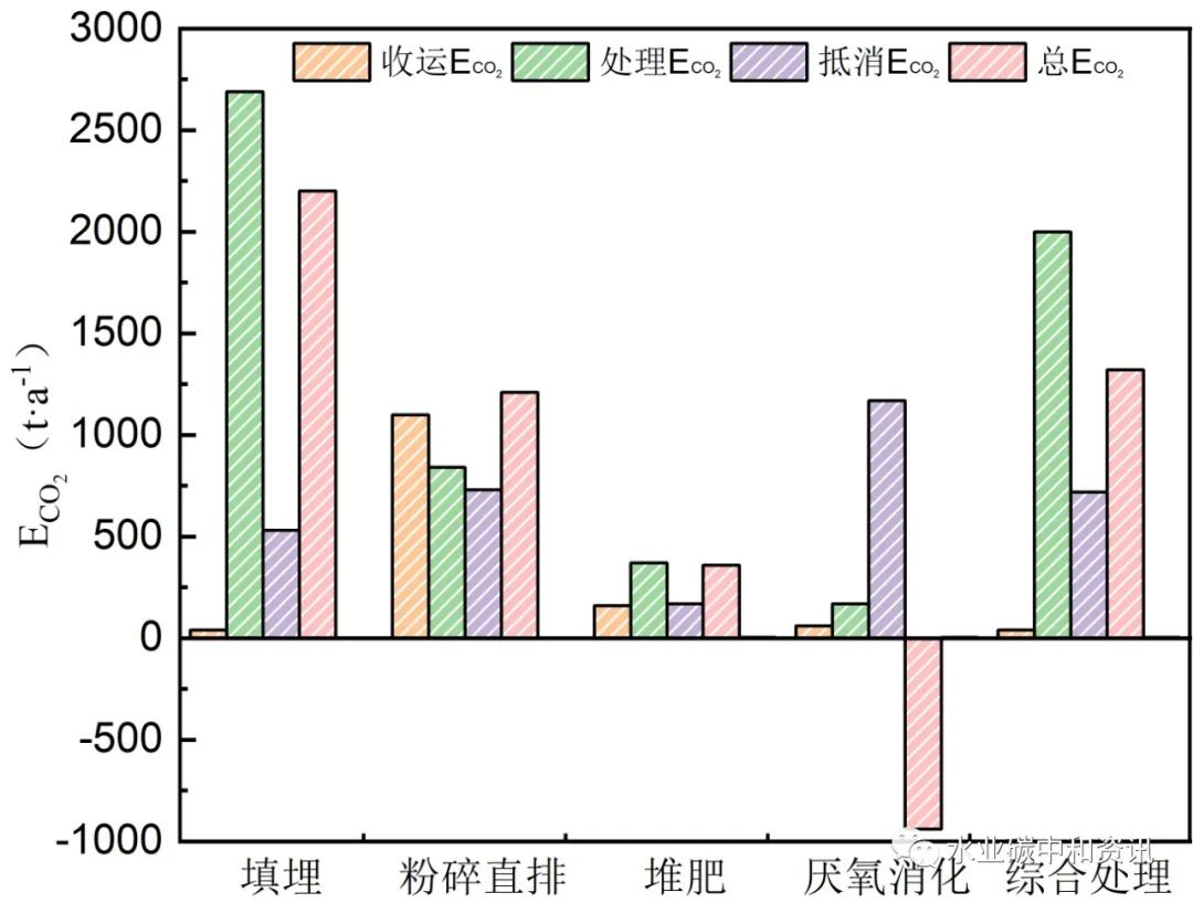 圖3 5種餐廚垃圾處置方式碳排放量