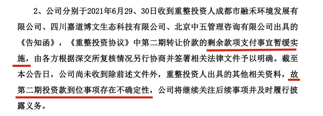 但如天翔環(huán)境近日披露,現(xiàn)在小國資們也出現(xiàn)了猶豫,目前已暫停打款。盡管已經(jīng)是白菜價接盤,但這個雷實(shí)在是太大,坑實(shí)在是太多,接完盤能不能玩轉(zhuǎn)?大家現(xiàn)在心理都沒底。