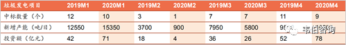 圖表9:2019年Q1-2020年Q1全國(guó)垃圾發(fā)電項(xiàng)目中標(biāo)情況
