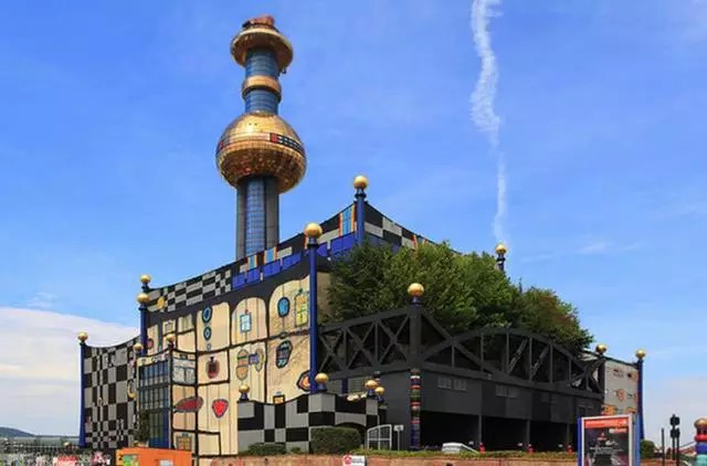 景觀設(shè)計(jì):這座建筑物是奧地利有名的藝術(shù)家、建筑設(shè)計(jì)師百水先生的杰作。工程從1988年至1992年進(jìn)行了四年建成。居民遠(yuǎn)遠(yuǎn)就可以看見一個(gè)高高聳立的大煙囪,中部有一個(gè)碩大的金色球體,在藍(lán)天下格外醒目。這金色的圓形球體會(huì)讓人聯(lián)想到某明珠電視塔的旋轉(zhuǎn)餐廳,其實(shí)不然。這就是垃圾焚燒廠的控制室。色彩斑斕而充滿童趣的外墻立面,讓人感覺就像是一座童話城堡。 外墻面上隨意涂抹的卡通畫,有的是各種色彩的水果,有的是各種性能的用具,煞是可愛。