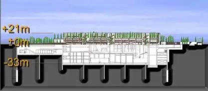 該廠寬110米,長(zhǎng)375米,高21米(地面部分)。用當(dāng)?shù)鼐用竦脑捳f:“它像一座豪華的寫字樓,像一個(gè)綠蔭環(huán)繞的圖書館,像醫(yī)院,像學(xué)校,就是不像垃圾處理廠?!比欢?,這正是歐洲最大的地下垃圾處理廠的地面部分。
