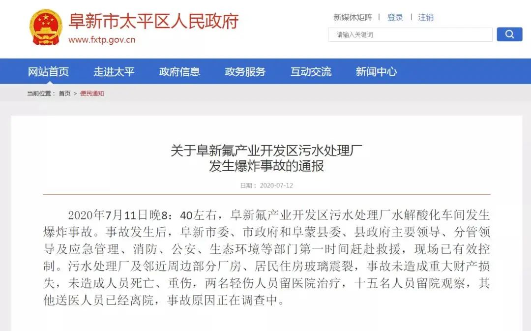 2、遼寧阜新一污水廠爆炸,17人受傷!5月以來(lái)全國(guó)發(fā)生10起污水事故21人死亡,環(huán)保圈,2020-07-12