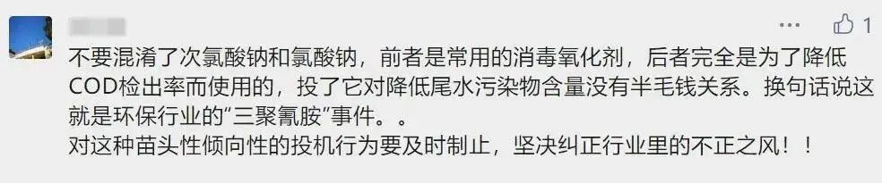 “篡改偽造監(jiān)測(cè)數(shù)據(jù)”看似只是一例普通的爆炸事故,但報(bào)告中尚且存在很多疑點(diǎn),例如,原輔材料中不包含的氯酸鈉,為什么會(huì)出現(xiàn)在碧波污水廠的庫(kù)房中?事故調(diào)查初期,益諾歐公司技術(shù)總監(jiān)李宇偉為什么不承認(rèn),并且阻止手下員工提及企業(yè)使用過(guò)氯酸鈉?原來(lái),氯酸鈉就是污水處理行業(yè)內(nèi)俗稱的“COD去除劑”,今年1月,生態(tài)環(huán)境部還公布過(guò)全國(guó)首例因?yàn)槭褂肅OD去除劑而被認(rèn)定為“篡改偽造監(jiān)測(cè)數(shù)據(jù)”的案例。