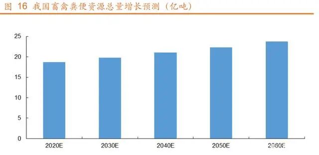 廣義上畜禽糞便為畜禽排出的糞尿?yàn)橹?。目前,根?jù)《中國(guó)農(nóng)業(yè)年鑒》、 《中國(guó)農(nóng)村統(tǒng)計(jì)年鑒》、《中國(guó)畜牧獸醫(yī)年鑒》以及國(guó)家統(tǒng)計(jì)局最新畜禽存欄 數(shù)據(jù)測(cè)算,我國(guó)畜禽糞便資源量共計(jì) 18.68 億噸(不包含沖洗廢水)。根據(jù)年 鑒統(tǒng)計(jì)數(shù)據(jù),近年來(lái)我國(guó)主要畜禽類存欄量呈現(xiàn)小幅震蕩,雖然在 2019 年到 低點(diǎn)后因擴(kuò)大豬肉供給大幅反彈,總體上還是受短期市場(chǎng)因素影響。預(yù)計(jì)未 來(lái)肉蛋奶消費(fèi)市場(chǎng)將趨于飽和,畜禽糞便資源量保持在固定區(qū)間內(nèi),畜禽糞 便資源量將保持 0.6%的較低增長(zhǎng)趨勢(shì)。預(yù)計(jì) 2030 年畜禽糞便資源總量約為 19.83 億噸;2060 年畜禽糞便資源總量約為 23.73 億噸。