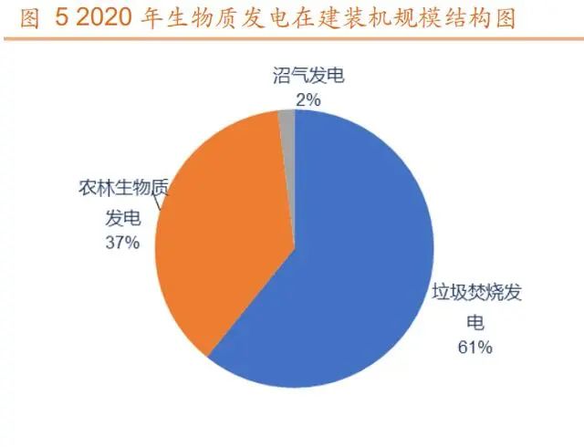 生物質(zhì)發(fā)電裝機(jī)容量中垃圾焚燒發(fā)電和農(nóng)林生物質(zhì)發(fā)電合計(jì)貢獻(xiàn) 96%。