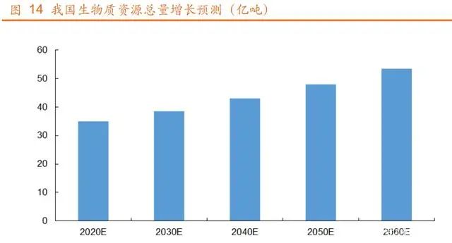 隨著我國(guó)經(jīng)濟(jì)的發(fā)展和消費(fèi)水平的不斷提升,生物質(zhì)資源產(chǎn)生量呈不斷 上升趨勢(shì),總資源量年增長(zhǎng)率預(yù)計(jì)維持在 1.1%以上。預(yù)計(jì) 2030 年我國(guó)生物 質(zhì)總資源量將達(dá)到 37.95 億噸,到 2060 年我國(guó)生物質(zhì)總資源量將達(dá)到 53.46 億噸。