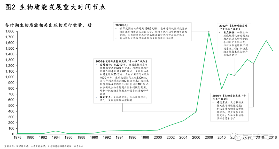 然而總的來說,生物質(zhì)能發(fā)展的時(shí)間并不長,21世紀(jì)以前這個領(lǐng)域的相關(guān)研究極少,我國也直到“十一五”才首次將其納入規(guī)劃范圍。2008年石油危機(jī)促使人類開始尋找替代能源,生物質(zhì)能也逐漸成為一個重要的選項(xiàng)(見圖2)。