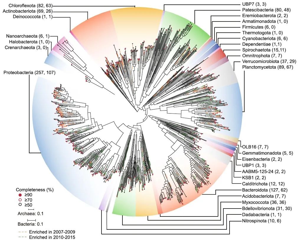 從920個宏基因組拼接基因組得到的種系演化圖