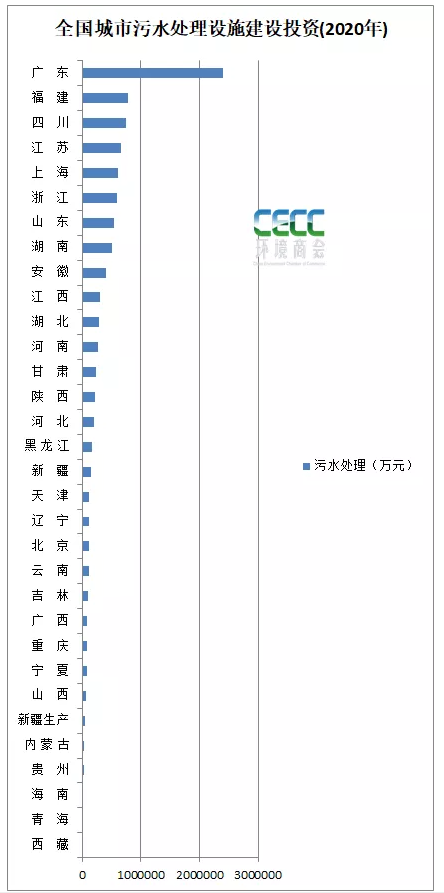 從固定資產(chǎn)投資來看,2020年,廣東省污水設(shè)施建設(shè)投資,接近240億,福建省和四川省的投資額為78億、75億左右。具體如圖: