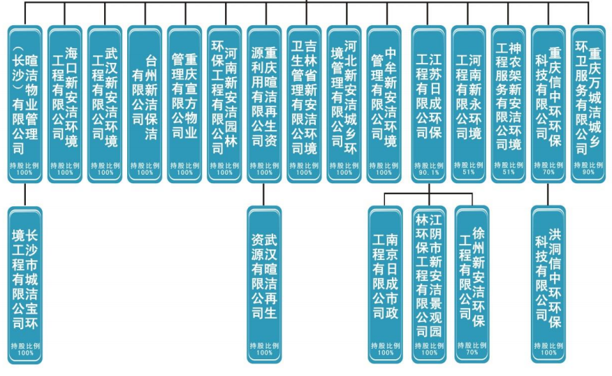 就在其宣布轉(zhuǎn)板消息不久,9月3日,北京證券交易所(下文簡稱“北交所”)注冊成立,11月15日將正式開市。據(jù)了解,北交所實行試點證券公開發(fā)行注冊制,由全國中小企業(yè)股份轉(zhuǎn)讓系統(tǒng)中的精選層整體平移而來,定位為“專精特新”中小企業(yè)直接融資服務(wù),偏重服務(wù)創(chuàng)新型中小民營企業(yè)。這樣一來,對于環(huán)保產(chǎn)業(yè)中有機固廢處理、節(jié)能降碳裝備、資源循環(huán)利用等細分領(lǐng)域的科技創(chuàng)新驅(qū)動型中小企業(yè)來說,或許更有機會。而根據(jù)規(guī)則,屆時包括新安潔在內(nèi)的新三板市場精選層首批68家公司將全部平移進入北交所。但對于已經(jīng)進入轉(zhuǎn)板通道的新安潔來說,或許因為對北交所活躍度有所擔(dān)心,或許由于轉(zhuǎn)板箭在弦上不得不發(fā),也或許其對轉(zhuǎn)板成功率有更多的信心,所以北交所的設(shè)立并沒有打斷其轉(zhuǎn)板的計劃。9月 13日、29日、10月20日和11月3日,新安潔專門發(fā)布了轉(zhuǎn)板進展公告,稱創(chuàng)業(yè)板轉(zhuǎn)板工作仍然按計劃推進,并將在完成各項準備工作后向深圳證券交易所提起申報。從其所處的行業(yè)看,目前環(huán)衛(wèi)市場的格局已經(jīng)有了新的變化,市場整體的領(lǐng)先地位已經(jīng)被北京環(huán)衛(wèi)、僑銀環(huán)保、玉禾田、啟迪桑德、盈峰環(huán)境、北控城市服務(wù)、龍馬環(huán)衛(wèi)等新老環(huán)衛(wèi)企業(yè)穩(wěn)定占據(jù),一些領(lǐng)先企業(yè)開始向城市服務(wù)運營商轉(zhuǎn)型。在業(yè)務(wù)方面,新安潔的業(yè)務(wù)范圍已經(jīng)覆蓋了重慶、湖北、江蘇、河南、山東、湖南、安徽等全國12個省,重慶區(qū)域的業(yè)務(wù)占比約1/4。其中,“重慶市兩江新區(qū)生活垃圾分類”、“武漢市東西湖區(qū)生活垃圾分類”、“山東青州市城鄉(xiāng)環(huán)衛(wèi)一體化”和“河南汝南縣城鄉(xiāng)環(huán)衛(wèi)一體化”項目,入選了中國城市管理協(xié)會主辦的2018國際城市環(huán)境衛(wèi)生博覽會示范案例。▼新安潔公司結(jié)構(gòu)圖(截至2020年6月,來源:新安潔公告)此外,隨著這些年互聯(lián)網(wǎng)、物聯(lián)網(wǎng)、信息技術(shù)、智慧城市、AI等新技術(shù)在環(huán)衛(wèi)行業(yè)中應(yīng)用越來越廣泛,新安潔也希望打造公司科技屬性,以全面實現(xiàn)環(huán)衛(wèi)智能化運營。