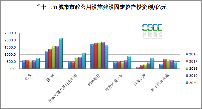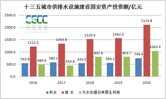 “十三五”市政排水及污水處理設(shè)施固定資產(chǎn)投資情況