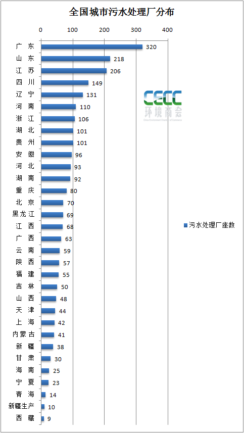 從全國范圍來看,截至2020年,廣東、山東、江蘇三省投建的污水處理廠位列前三甲,分別為320座、218座和206座。這三個省市的污水處理能力也相對較大。由這一數(shù)據(jù)聯(lián)想到此前企查查公布的環(huán)保企業(yè)數(shù)量分布相吻合,我國現(xiàn)有超過20萬家污水處理相關(guān)企業(yè),其中山東省以2.35萬家企業(yè)排名第一,廣東、江蘇分列二三位。截至2020年,全國城市污水處理能力分布(按照各省市污水處理廠數(shù)量排序):