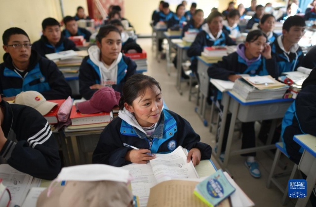 11月25日,青海省海南藏族自治州興海縣民族高級(jí)中學(xué)高一(1)班學(xué)生在教室內(nèi)聽(tīng)講。新華社記者 駱曉飛 攝