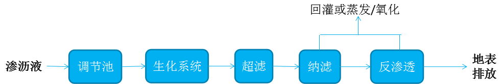 對于垃圾填埋設施,按照《生活垃圾填埋場污染控制標準》(GB 16889-2008)的要求,采取場內自處理方式,需在場內自建滲濾液處理設施,出水達標后直接排放自然水體。這種處理方式下,產(chǎn)生的滲濾液濃縮液往往采取回灌或回流方式,造成污染物在填埋場內持續(xù)富集,影響滲濾液處理系統(tǒng)有效穩(wěn)定運行。