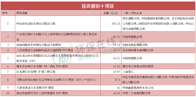 總體來看,今年涉水項(xiàng)目的地域性明顯,廣東省發(fā)力很猛,是涉水項(xiàng)目的重要集聚地,項(xiàng)目發(fā)起第企業(yè)中標(biāo)當(dāng)?shù)仨?xiàng)目更有優(yōu)勢(shì)。而從中標(biāo)情況來看,聯(lián)合體中標(biāo)與PPP運(yùn)行方式依然是大項(xiàng)目的主要模式,其中,長(zhǎng)江環(huán)保集團(tuán)是承包治理工作的主要牽頭企業(yè)。另外,農(nóng)村污水治理、管網(wǎng)修復(fù)等,或仍將繼續(xù)成為2022的重要治理內(nèi)容。
