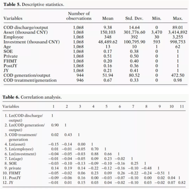 變量及其相關性的統(tǒng)計描述見文中的表5和表6。