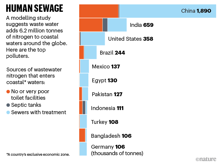根據(jù)當(dāng)?shù)胤ㄒ?guī)和處理廠條件,從這個(gè)工藝中排出的出水仍可能含有大量氮和其他營(yíng)養(yǎng)物質(zhì),以及一些其他污染物。而世界上57%的人口根本沒(méi)有連接到集中式污水處理廠(見(jiàn)“人類污水”)。