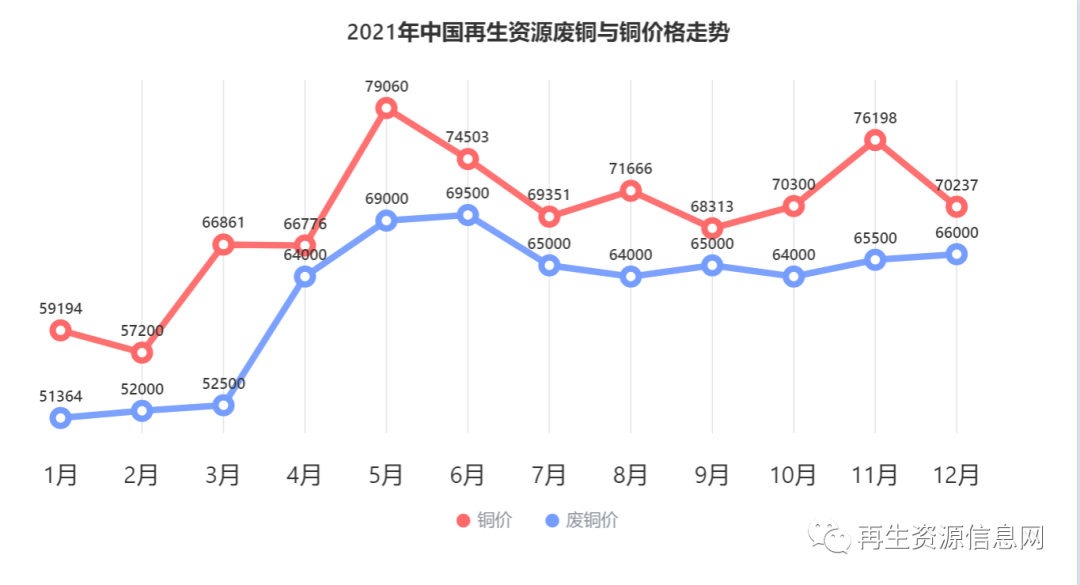 圖4 2021年我國(guó)再生資源廢銅與銅價(jià)格走勢(shì)圖
