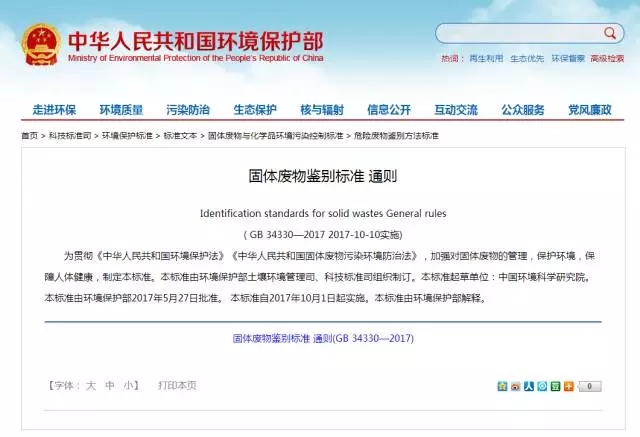 因此,為了統(tǒng)一各個(gè)檢驗(yàn)機(jī)構(gòu)或鑒別機(jī)構(gòu)鑒別固體廢物的尺度,保證鑒別質(zhì)量和鑒別結(jié)果的公正和可靠,環(huán)境保護(hù)部與國家質(zhì)量監(jiān)督檢驗(yàn)總局聯(lián)合發(fā)布《固體廢物鑒別標(biāo)準(zhǔn) 通則》(GB 34330-2017)。該標(biāo)準(zhǔn)是我國首次制定的關(guān)于固體廢物的鑒別標(biāo)準(zhǔn),具有強(qiáng)制執(zhí)行的效力。