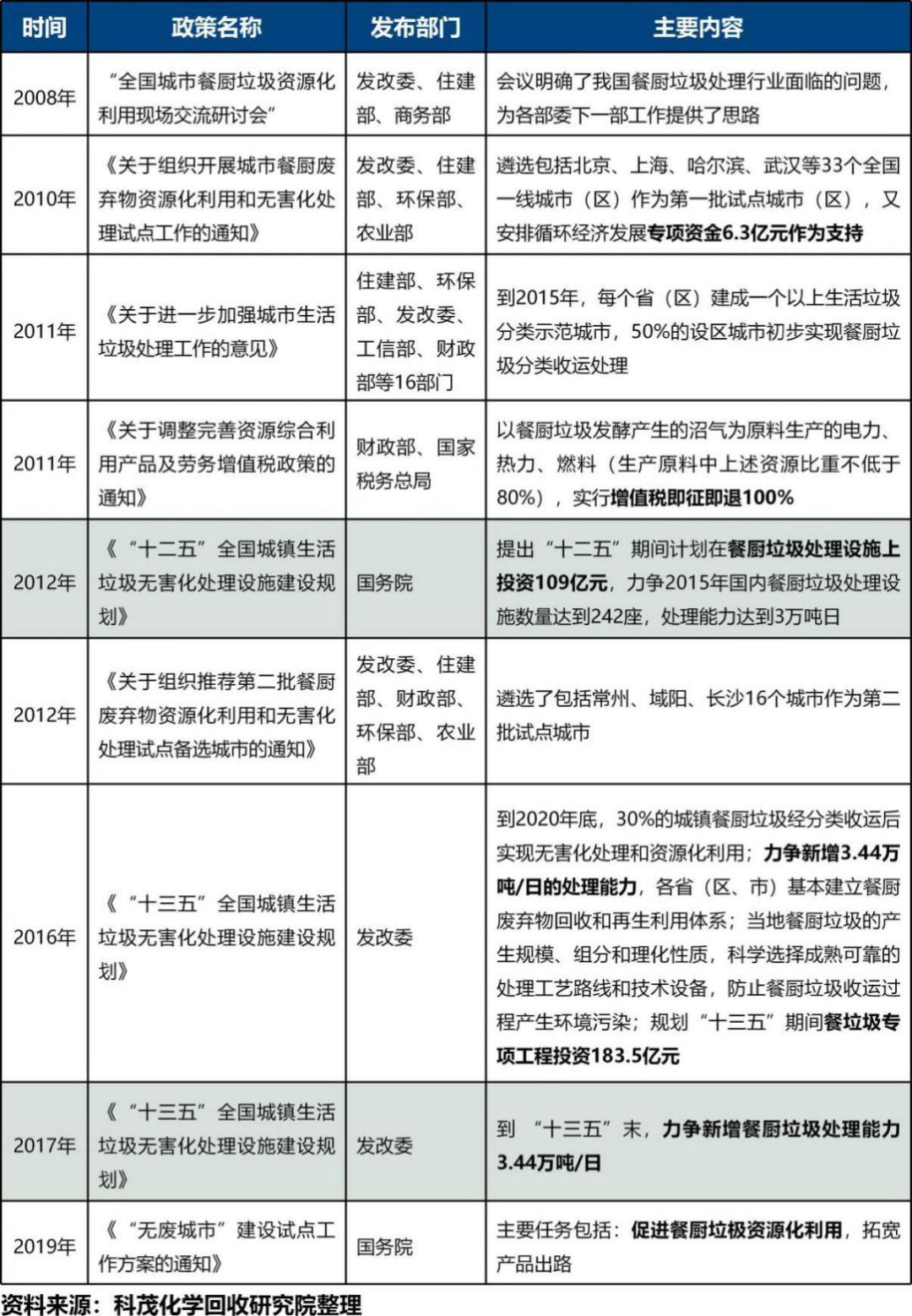廢塑料化學(xué)回收剛剛進(jìn)入政策制定早期,作為與垃圾焚燒、餐廚垃圾處理比較類似的垃圾終端處理技術(shù),其政策脈絡(luò)可供參考。