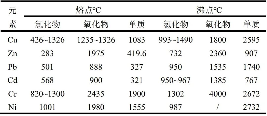 表2 飛灰中重金屬不同存在形態(tài)及其熔沸點