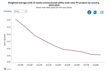 圖 2 2010-2019年中國光伏平均度電成本