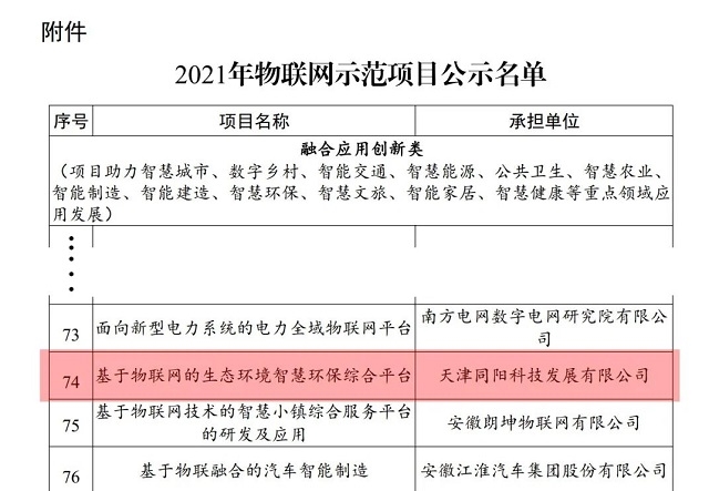近日,工信部發(fā)布了2021年物聯(lián)網(wǎng)示范項(xiàng)目名單,同陽科技的《基于物聯(lián)網(wǎng)的生態(tài)環(huán)境智慧環(huán)保綜合平臺(tái)》強(qiáng)勢(shì)入圍。